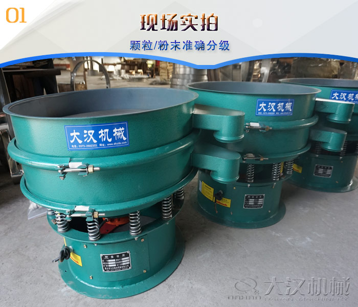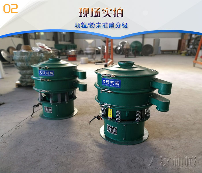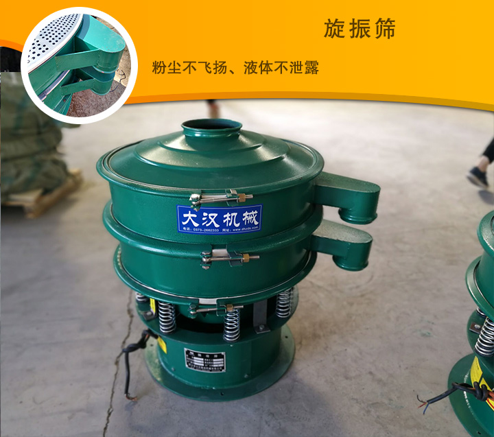 旋振篩是一種適合篩分粉狀物料的高精細篩分設備。任何顆粒、粉末、粘液一定范圍內均可篩選。篩分細至500目或0.028mm, 過濾小可至5微米。分級篩選,可篩一至五層篩網,能同時進行二至六個等級的分選或過濾。