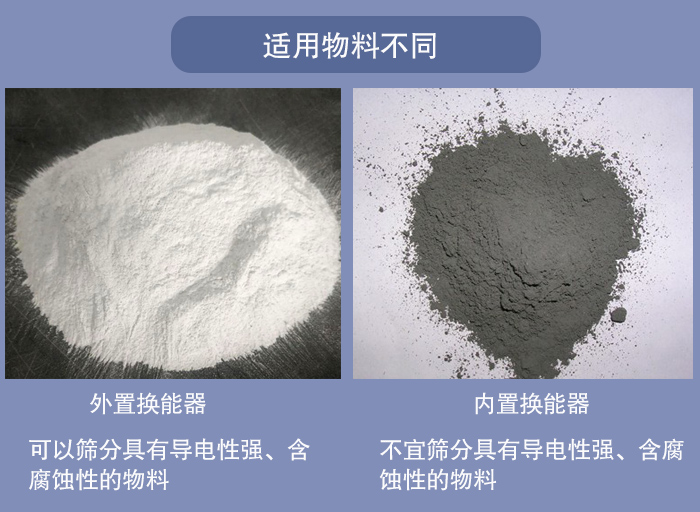 超聲波振動篩內置換能器:不宜篩分具有導電性強、含腐蝕性的物料。因為它是直接固定在網架中間,在使用過程中會與所篩分物料會有直接接觸,所以篩分一些導電性,腐蝕性物料的話,會對換能器輸出頻率造成影響,從而降低了篩分精度與產量。